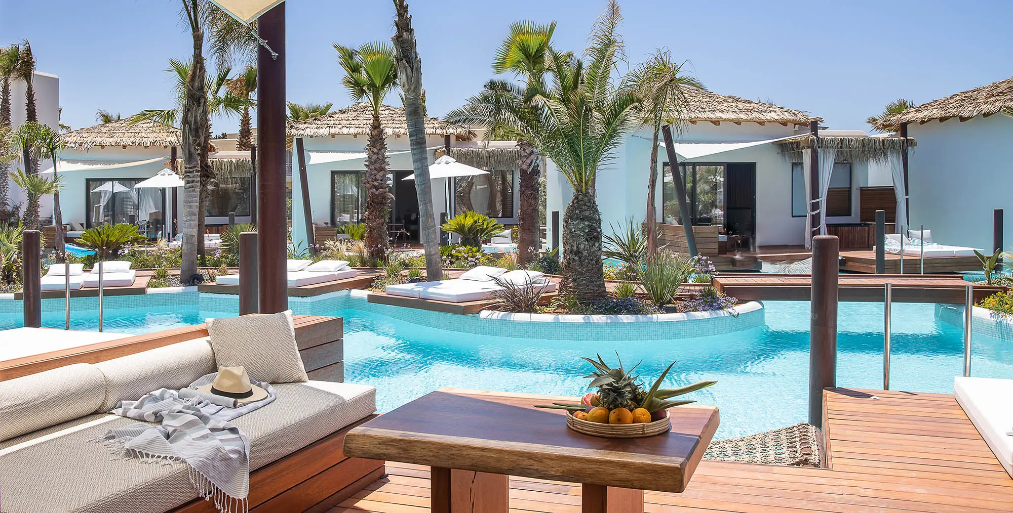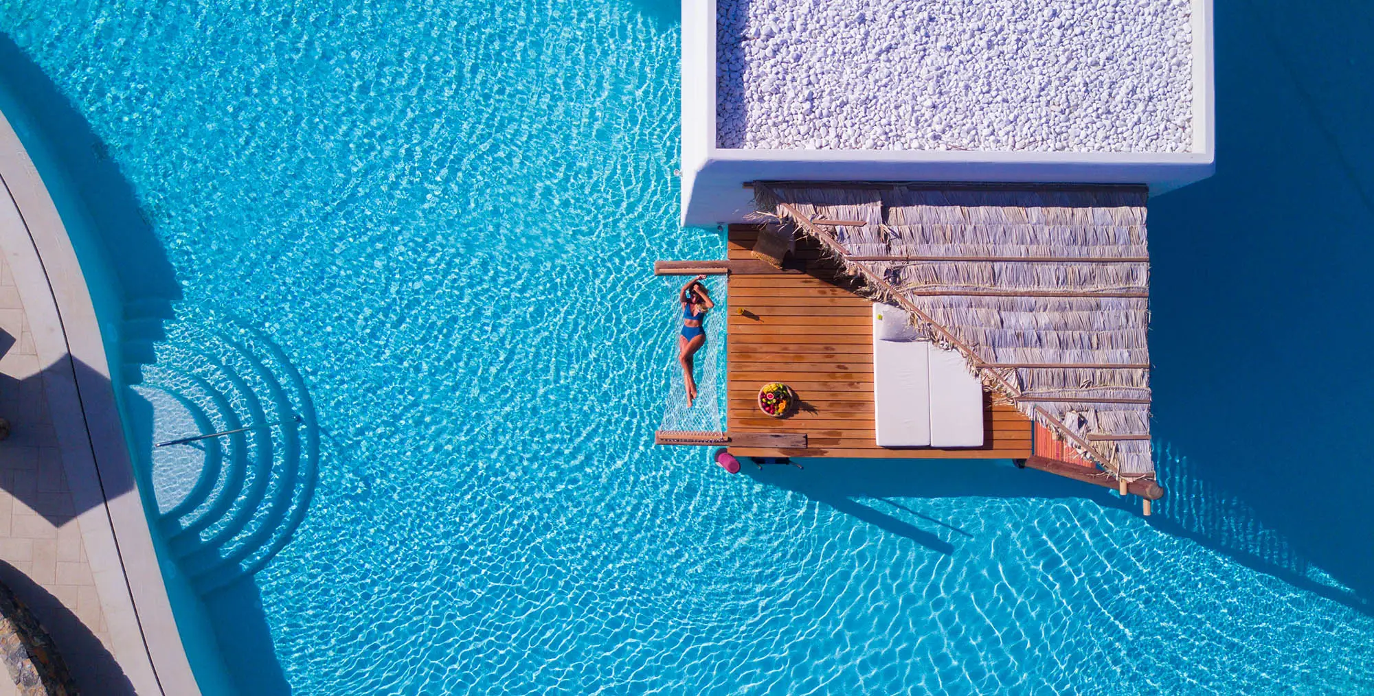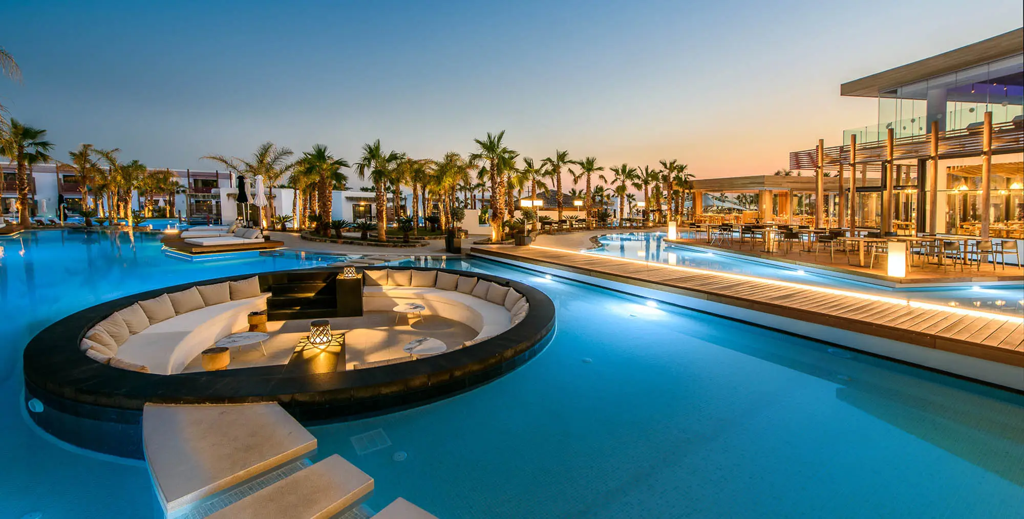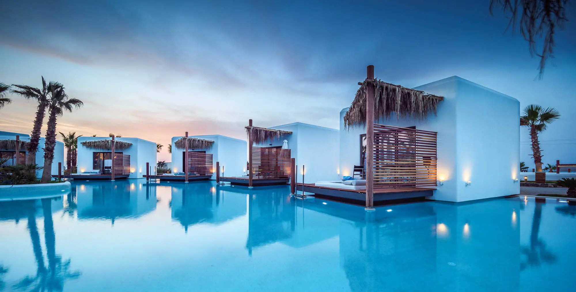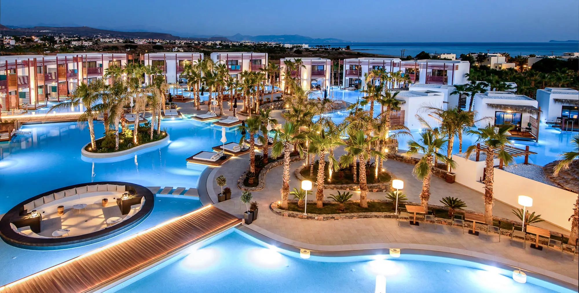 Stella Island is an idyllic, adults-only sanctuary designed for pure romance. Perfectly situated on the captivating island of Crete, the resort appears to float dreamily upon a network of magnificent lagoon-style pools. Guests can step from their private decks directly into the crystal-clear waters of swim-up pools, creating an unparalleled sense of luxury and connection.